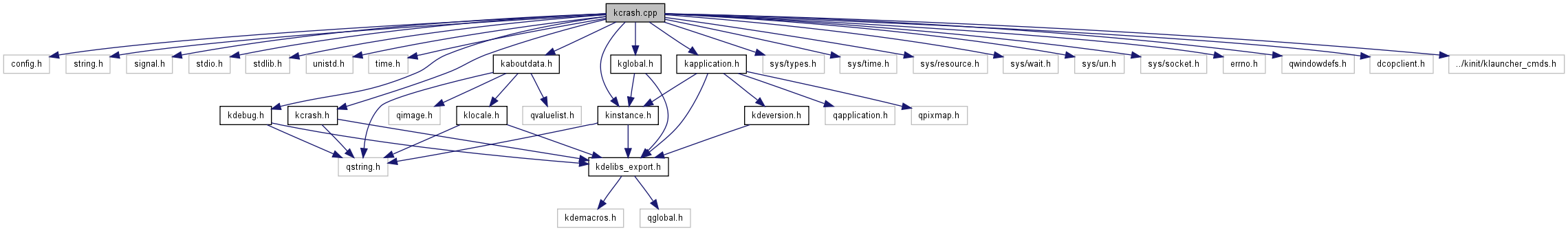 Include dependency graph for kcrash.cpp: