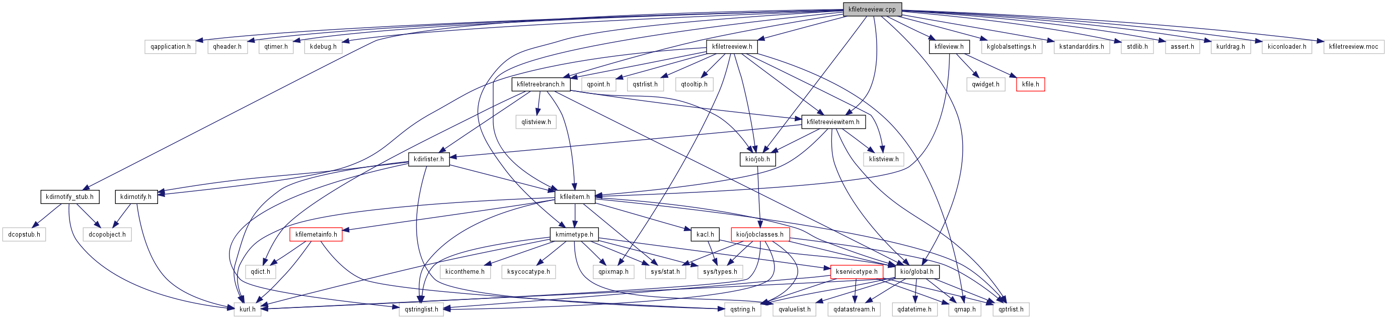 Include dependency graph for kfiletreeview.cpp: