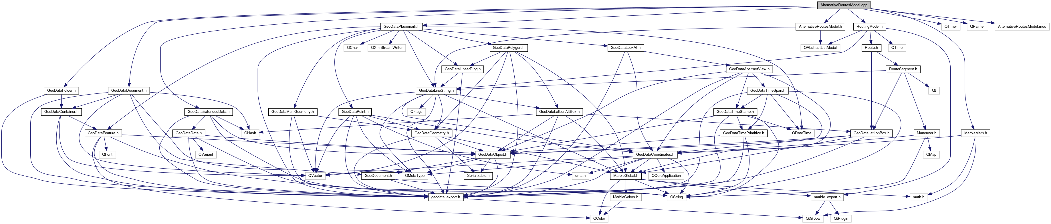 Include dependency graph for AlternativeRoutesModel.cpp:
