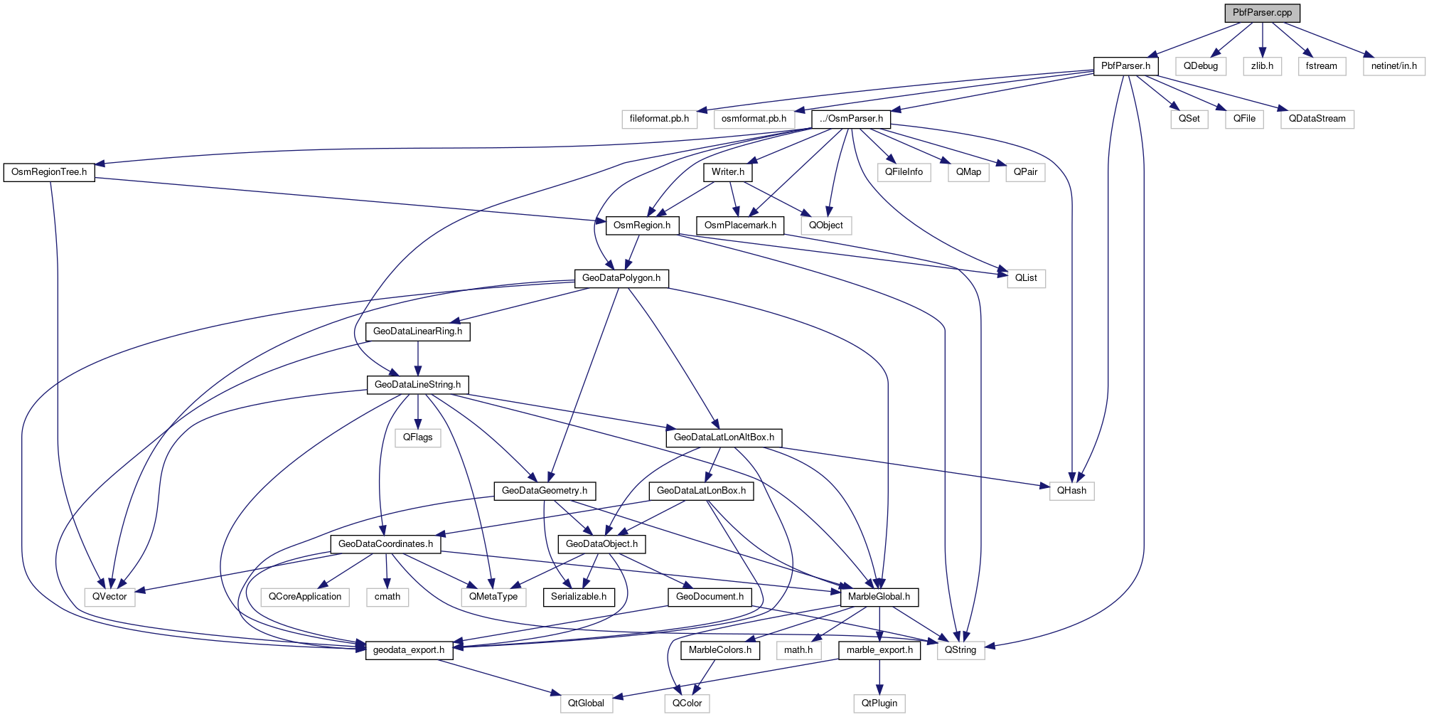Include dependency graph for PbfParser.cpp: