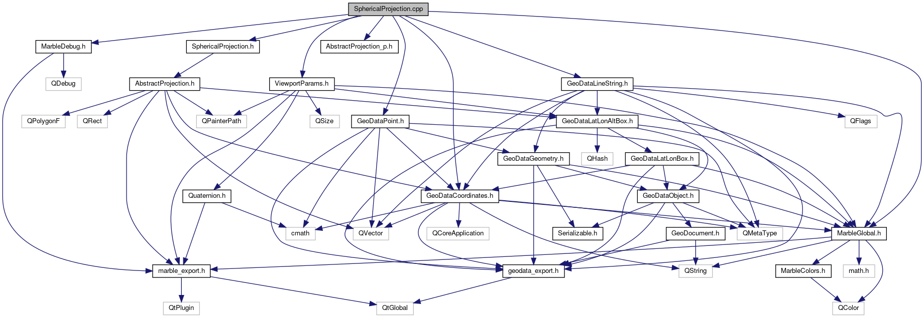 Include dependency graph for SphericalProjection.cpp: