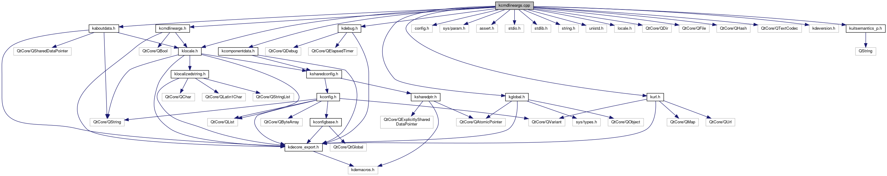 Include dependency graph for kcmdlineargs.cpp: