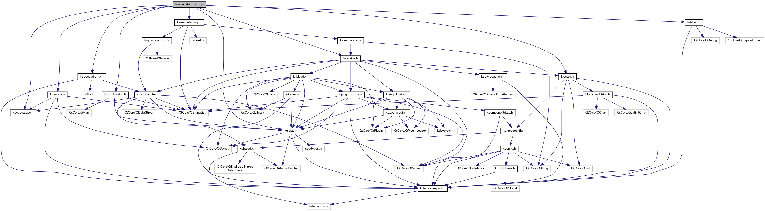 Include dependency graph for kservicefactory.cpp: