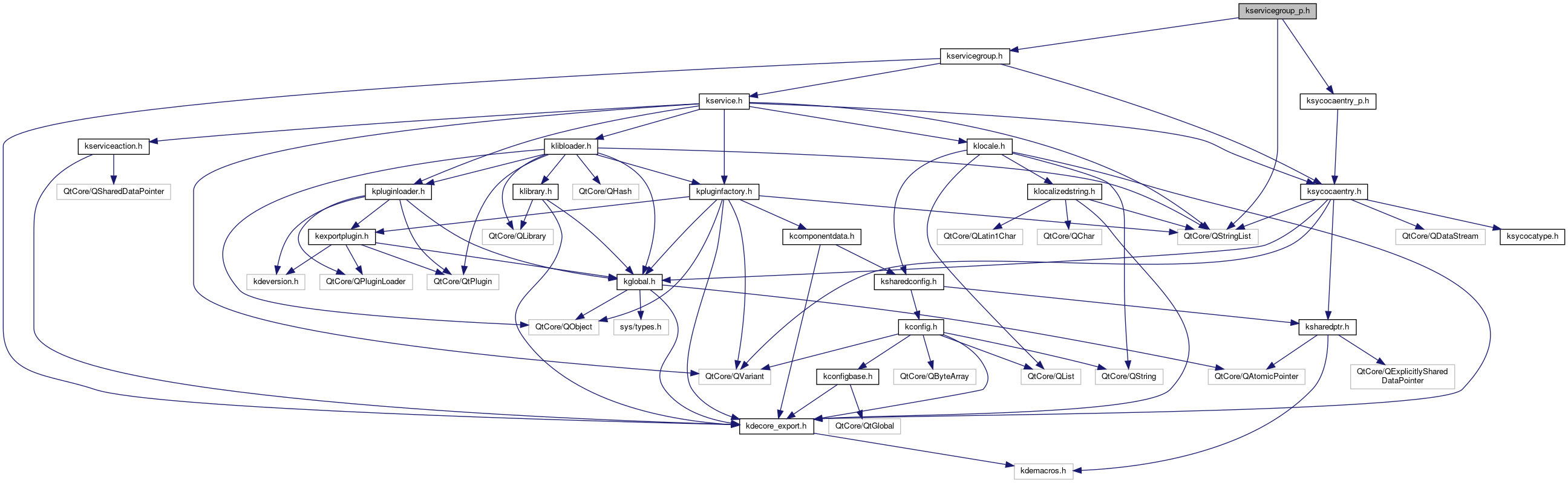 Include dependency graph for kservicegroup_p.h: