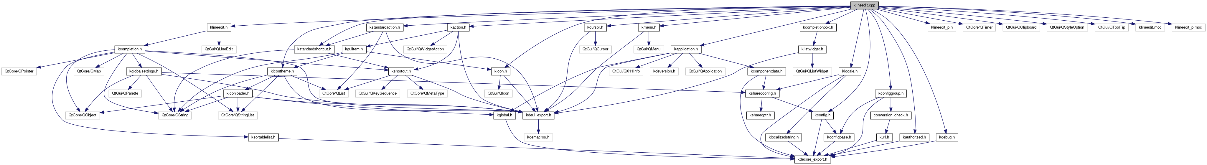 Include dependency graph for klineedit.cpp: