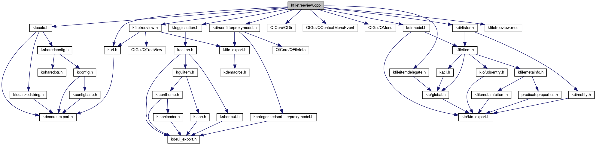Include dependency graph for kfiletreeview.cpp: