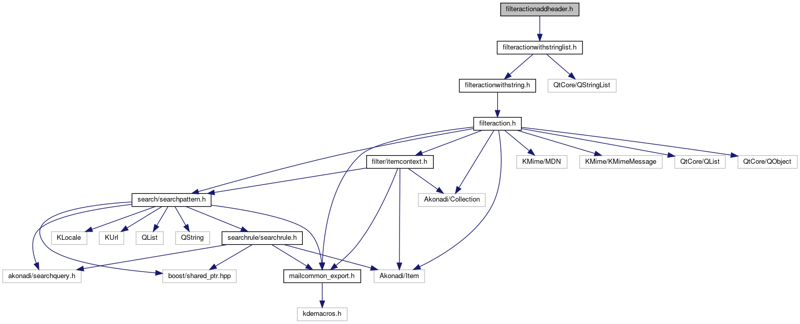 Include dependency graph for filteractionaddheader.h: