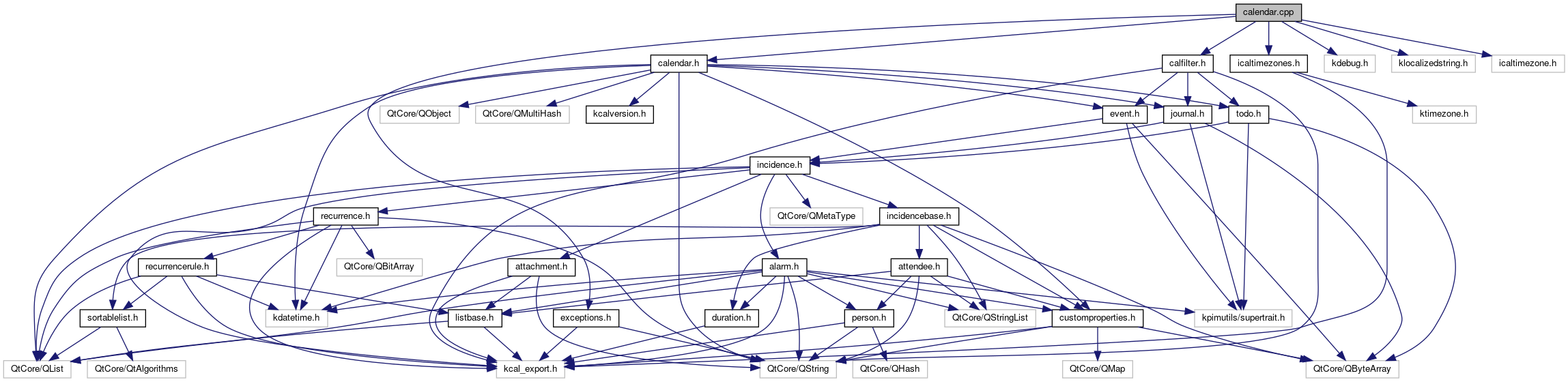 Include dependency graph for calendar.cpp: