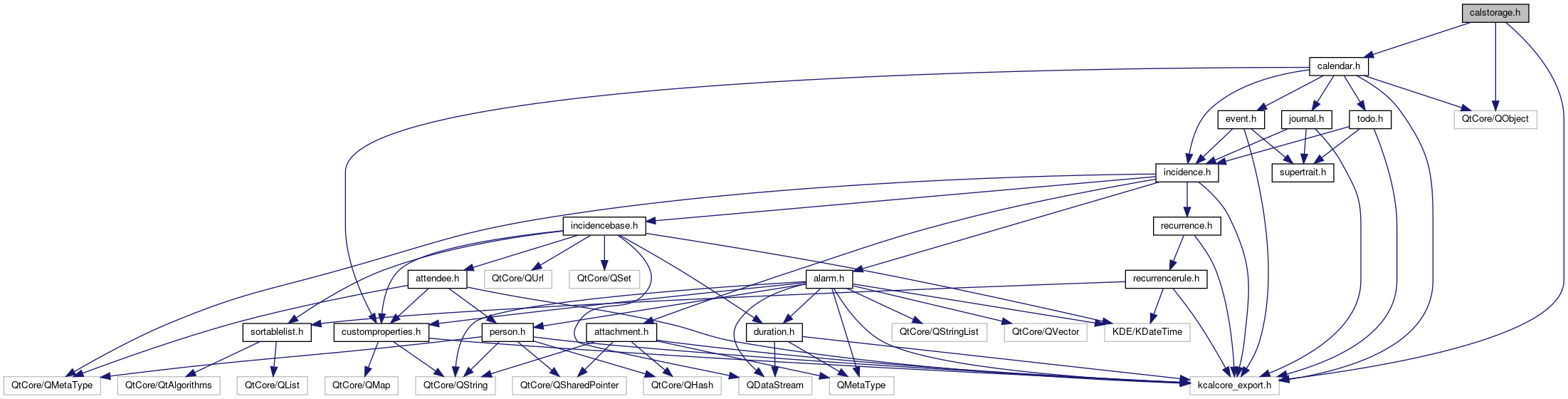 Include dependency graph for calstorage.h: