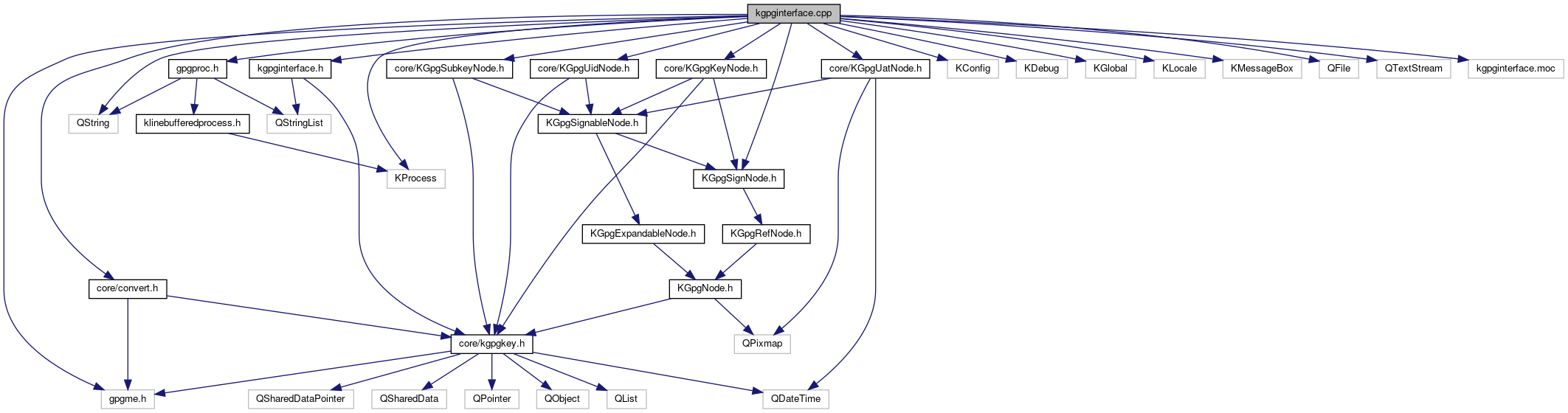 Include dependency graph for kgpginterface.cpp: